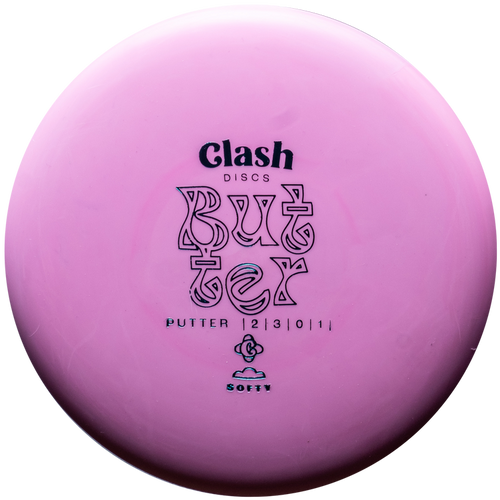 The Butter is a silky smooth beadless putter from Clash. It flies very straight with just a touch of low speed fade at the end of its flight. Clash describes it as deeper than the Popcorn and a tad more stable. It has a profile that feels similar to the Discraft Luna or Lone Star Penny Putter. Clash's Softy material is one of the best feeling soft putter plastics you can find. It is extra supple, grippy and almost feels like it is melting in your hand!