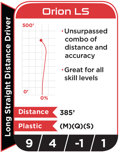 If you are looking for a driver that provides exceptional distance without a lot of fade, then look no further. The Orion LS Sirius is a low-profile high-speed driver with great glide. This solid performer has been engineered to deliver long straight shots throw after throw. The Orion is a cousin of the famous Millennium JLS, but has more speed and distance with the same neutral flight pattern.
