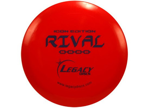 The Rival is a precision fairway driver designed to provide a straight flight with reliable fade in calm conditions, and a headwind-fighting straight flight when needed. Power throwers will find the Rival well-suited in the stable fairway slot, and newer or average throwers will find the Rival to be a useful go-to disc for gentle fades. The Icon plastic will fly fast, last forever, and give you superior grip in wet conditions. Icon is the highest quality blend of plastic offered by Legacy Discs, and is the choice of professionals! Features: Grippy and durable Legacy Icon plastic Produced by Pros Steve and Bamba Rico